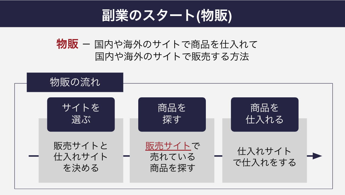 自己アフィリエイト、不用品販売、物販という3ステップで進んでいく中で、